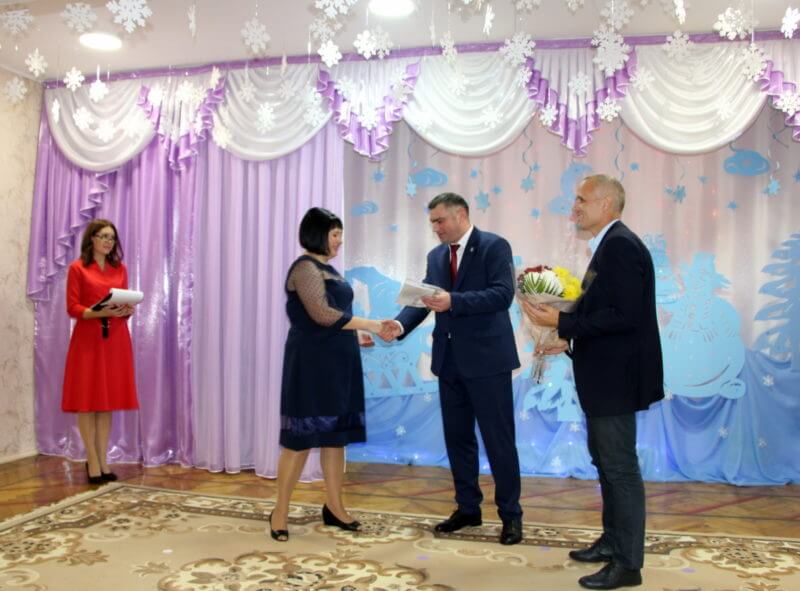 В этот день чествовали и первых руководителей, и ветеранов, и тех, кто продолжает заниматься воспитанием ребят. За многолетний добросовестный труд, высокий профессионализм грамотами и благодарственными письмами госадминистрации и горсовета наградили сотрудников образовательной организации: Татьяну Ганичеву, Светлану Деньговскую, Надежду Егорову, Веру Леднёву, Сергея Боруцкого, Маргариту Силаеву. В числе награждённых, помощник воспитателя Лилия Домбровская, которая работает в детском саду со дня его открытия.