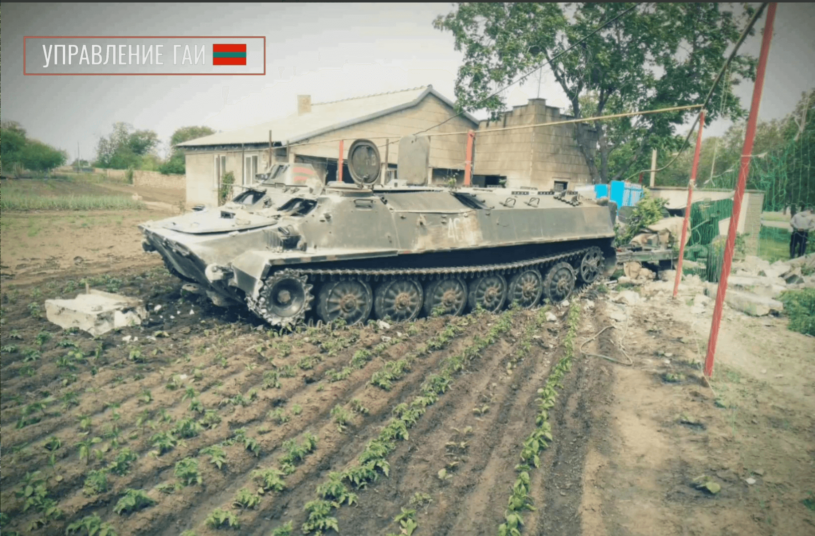 В Григориополе по улице Гагарина бронетранспортер советских времён МТ-ЛБ врезался в забор жилого дома. У бронетранспортёра заклинило поворотный механизм. МТ-ЛБ сначала наехал на дерево, затем на железобетонный столб и остановился во дворе частного дома, при этом снёс забор.