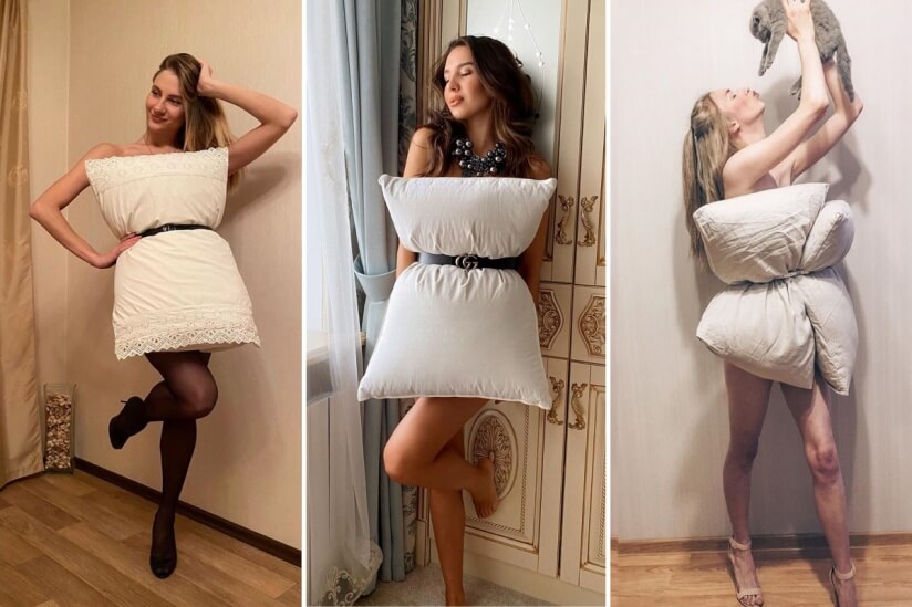 Во время самоизоляции в Instagram появился новый челлендж: фотографии пользователей на которых, вместо платья — подушка.