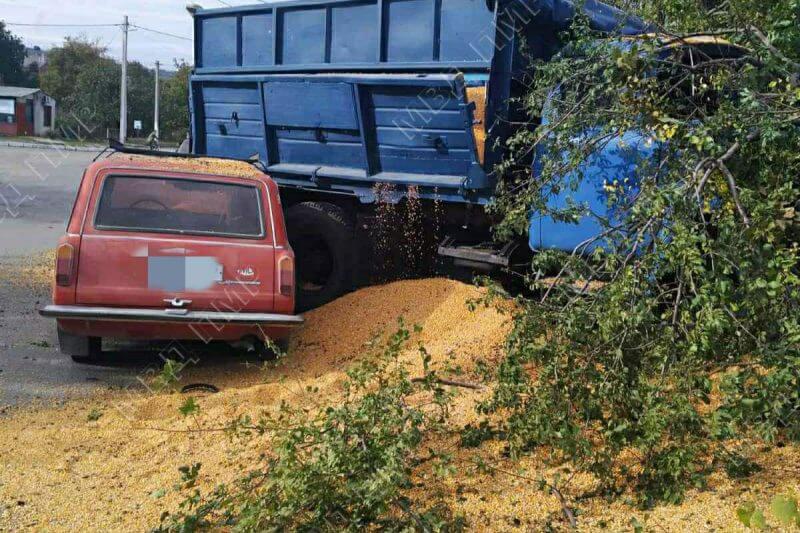 В результате дорожного происшествия пострадавших нет. В салоне легковушки людей не было. Предварительно, водитель грузовика был трезв. Обе машины получили механические повреждения, также от удара искорёжен забор. Часть кукурузы из кузова рассыпалась на дорогу.