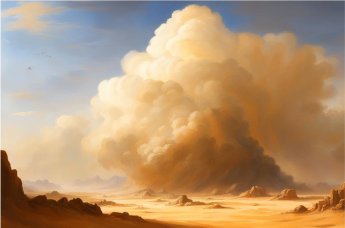 Облако пыли из Сахары. Фото ИИ kandinsky