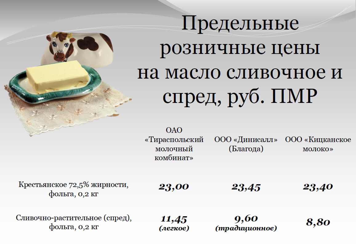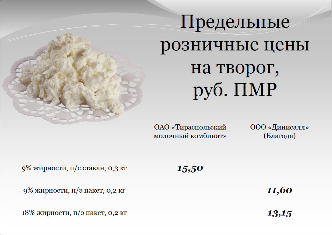 Предельно допустимые розничные цены на молочную продукцию в республике опубликовало Министерство экономического развития ПМР. Это молоко, кефир, творог, сливочное масло и спред.