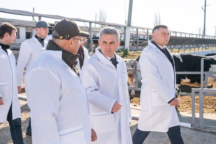 Говорили на встрече и о сельском хозяйстве. В Рыбницком районе обрабатывается 53,5 тысячи гектаров пашенной земли. Развита сеть КФХ – более шести сотен крестьянско-фермерских хозяйств. Зарегистрировано 61 сельхозпредприятие, восемь из них – животноводческие. Самое крупное – ООО «Фиальт-Агро». На одном из его подразделений – животноводческой ферме в селе Зозуляны – побывал глава государства. Президенту рассказали, что агрофирме в целом удалось увеличить штат сотрудников, запустить новое производство, обновить машинотракторный парк.