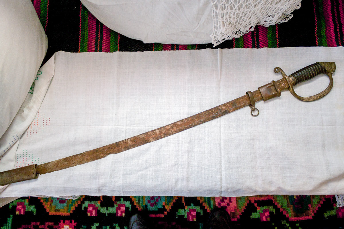 В селе Строенцы Рыбницкого района местный житель, во время ремонта опорной стены террасы, обнаружил саблю с монограммой российского императора Николая II.