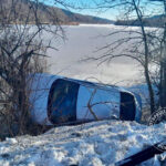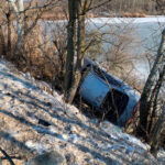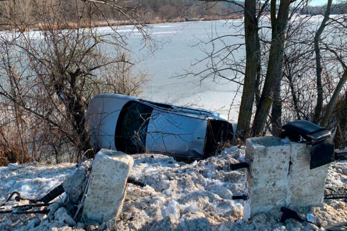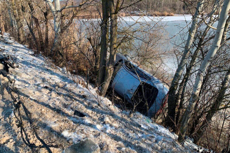 Машину занесло. «Сеат» зацепил сигнальные столбы, расположенные вдоль края проезжей части, слетел с дороги на берег реки Сухой Ягорлык и опрокинулся на бок. Машина едва не оказалась в воде, её придержали деревья.