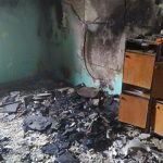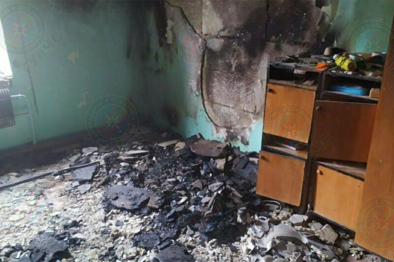 Два пожарных расчёта в течение 4 минут локализовали огонь. В результате пожара сгорела деревянная тумбочка, в которой находился очаг воспламенения. Повреждены шкаф, окно. Закопчены стены и потолок.