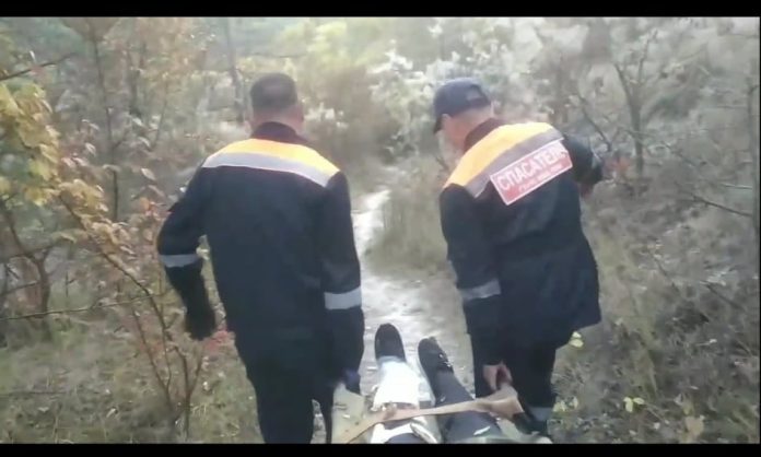 Сотрудники Рыбницкого АСП, поднявшись наверх, зафиксировали ногу женщины, наложили шину и на носилках спустили её с 400-метровой высоты.