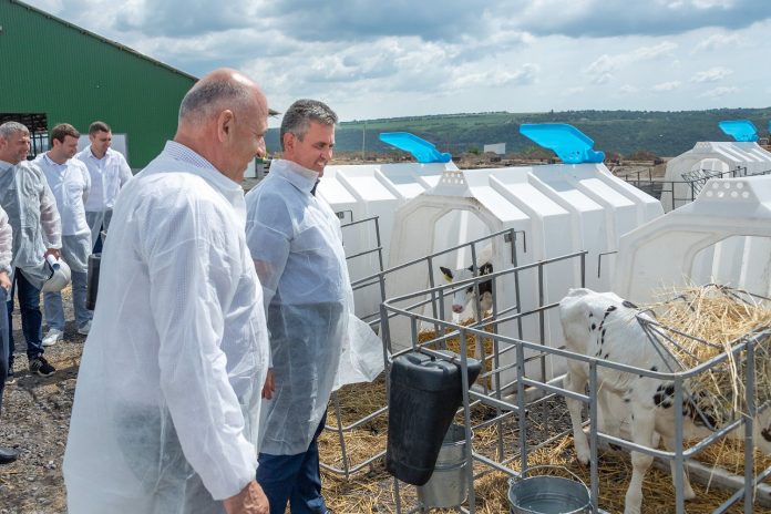 Вадим Красносельский и Виктор Тягай проехали по селам Попенки и Зозуляны. Местное население трудоустроено благодаря функционированию животноводческого предприятия, принадлежащего ООО «Фиальт-Агро». На подъезде к ферме руководителей страны и района встретил директор. Сергей Писаренко рассказал, что молочно-товарный комплекс стремится достичь к 2026 году количественного показателя в 1280 голов фуражного скота и производственной мощности комбината в 30 тонн перерабатываемого в сутки молока. Территория фермы позволяет расширять инфраструктуру.